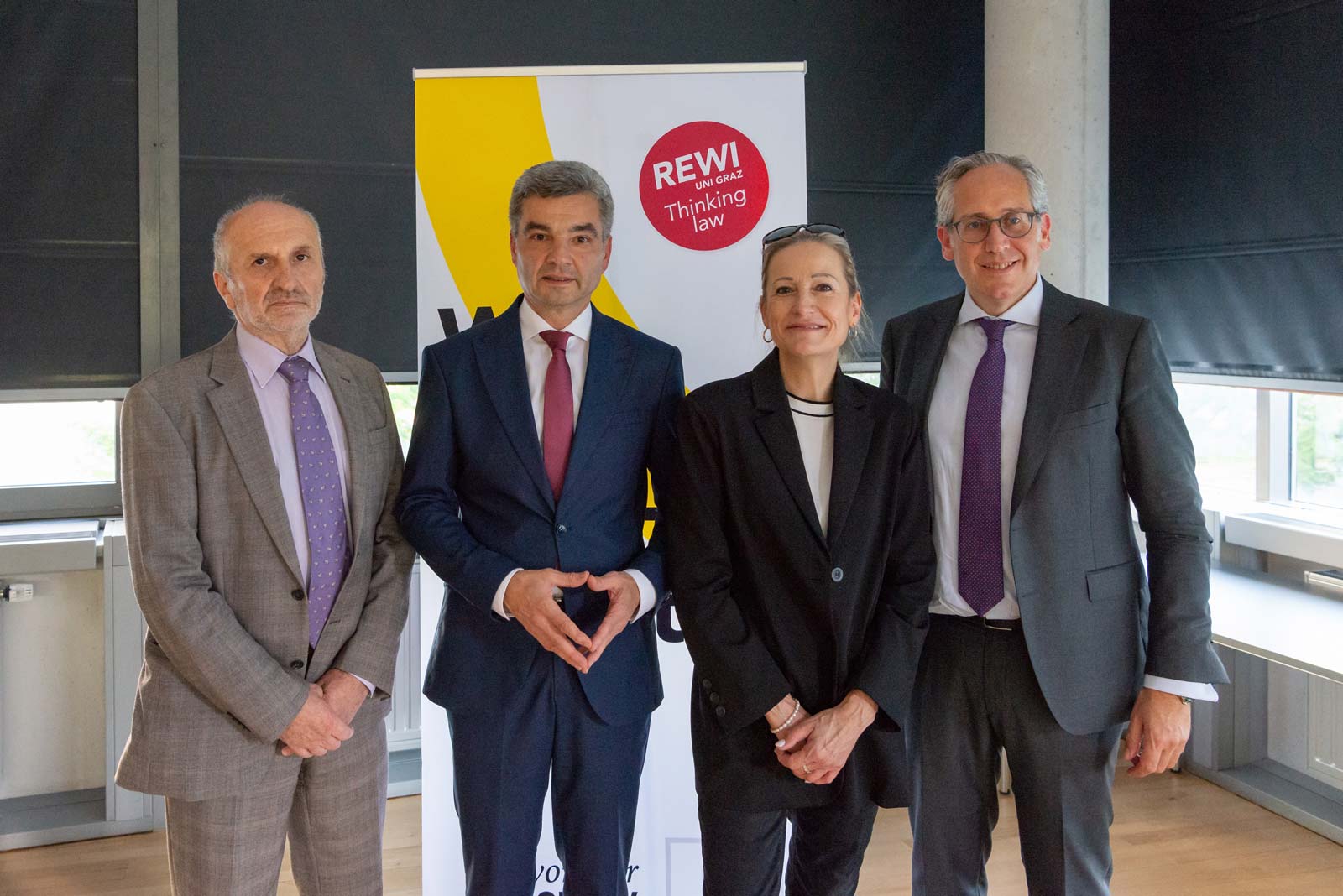 Präsident der Finanzprokuratur Wolfgang Peschorn und Rechtsanwalt Clemens Jaufer trugen im Rahmen der Plattform für Wirtschafts-, Insolvenz- und Sanierungsrecht an der Universität Graz vor.