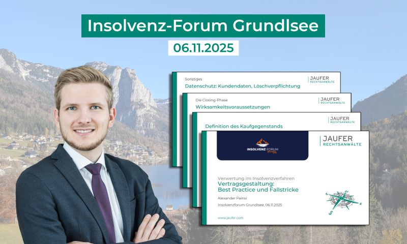 Von 06.-08.11.2025 fand zum 31. Mal das traditionelle Insolvenz-Forum Grundlsee statt. Unser Kanzleipartner Alexander Painsi hielt im Rahmen des Themenschwerpunkts „Verwertung im Insolvenzverfahren“ einen Workshop über „Vertragsgestaltung: Best Practice und Fallstricke“.